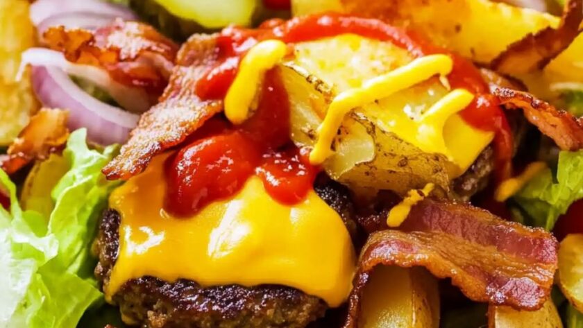 This delicious Bacon Cheeseburger Salad is a quick and easy way to enjoy all the flavors of a classic cheeseburger in a healthier, lighter form. Packed with crispy croutons, juicy grilled patties, and savory bacon, it’s the perfect balance of flavor and crunch. Plus, it’s easily customizable with your favorite toppings!